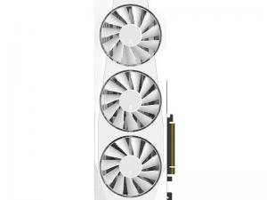 蓝宝石 RX9070 GRE 12G D6 OC卡身整体为“雪白色”,尺寸为320×120.25×61.6mm,采用三风扇全尺寸设计,占用3槽空间。主动散热部分采用2大1小的3个7叶飞翼轴流风扇,搭配双滚珠轴承结构,可高效散热并延长风扇使用寿命。